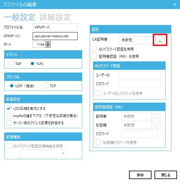 ※ TLS-Auth共通鍵については、サーバ側で設定を行っている場合のみ必要となります。